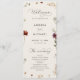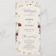 Infórmese a sus huéspedes sobre el programa de bodas con esta elegante tarjeta de programa, que incluye flores silvestres color agua de la bonito, fondo de boho, guión delicado elegante y texto personalizado. Añade fácilmente tus propios detalles haciendo clic en la opción "personalizar".