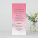 Elegante programa de bodas destino con un diseño tropical de palmeras en un fondo rosa puesta de sol con escritura elegante y tipografía moderna. El rosa claro desaparece en un fondo blanco. Simplemente añada tus detalles bodas a este elegante programa de bodas de playa tropical. Diseñado exclusivamente para usted por Happy Dolphin studio.