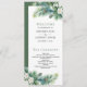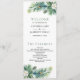 Tema del pavo real: programa de bodas indio con hermosas plumas de pavo real y hojas tropicales.