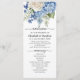 Elegante diseño boda floral con acuarelas florales de flores de hortensias azules, vegetación y rosas blancas.