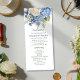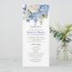 Elegante diseño boda floral con acuarelas florales de flores de hortensias azules, vegetación y rosas blancas.