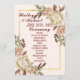 Regrese a la elegancia de los años 90 con esta bella peonía de oro, rosa y color crema de agua que rodea un texto marrón profundo que invita a sus invitados a su boda.