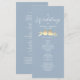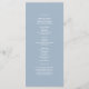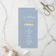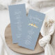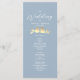 Elegante programa de ceremonia de boda azul polvo con un romántico par de tórtolas doradas y fuentes de caligrafía moderna. Este diseño vertical describe el horario de la ceremonia e incluye sus nombres y fecha de boda. Perfecto para bodas de primavera, verano o principios de otoño con un tema pastel, inspirado en la naturaleza o romántico. Una hermosa coincidencia con el conjunto completo de invitaciones de boda de tórtolas azul polvo y oro.