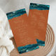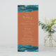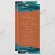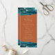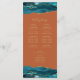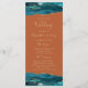 Este elegante y moderno programa de bodas cuenta con verde azuladas acuarelas azules con bordes superiores e inferiores recortados con un purpurina de imitación de oro. El texto aparece en elegantes letras de color dorado y fuentes de copperplate en un fondo naranja quemado.