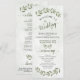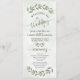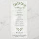 Este hermoso programa de boda presenta un diseño boho chic elegante con ramitas pintadas a mano de hojas de acuarela sobre un fondo de salvia pálida marmolada. Los títulos están escritos en caligrafía de guion elegante, y hay espacio para los detalles de su ceremonia y corte nupcial, así como un breve agradecimiento a sus invitados. Una forma maravillosa de dar la bienvenida a amigos y familiares a su celebración de boda.