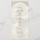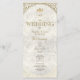 Este elegante programa de boda presenta un fondo refinado con textura de mármol marfil y texto dorado brillante con adornos ornamentados. El diseño vertical muestra una mezcla elegante de fuentes serif y caligráficas, proporcionando un hermoso esquema de su ceremonia de boda. El escudo dorado con iniciales de monograma añade un toque regio, lo que hace que este programa sea perfecto para bodas formales, lujosas o atemporales. Totalmente personalizable con el orden de su ceremonia, nombres, fecha y más.
