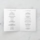Programa de boda plegado de estilo clásico con un diseño simple y minimalista en blanco y negro con una combinación de fuentes serif tradicionales y una escritura elegante junto con su fecha en un formato grande para un toque moderno. Este programa elegante es ideal para una boda formal.