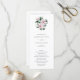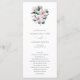 Programa de boda floral elegante con un ramo de flores de magnolia rosadas pintadas con acuarela junto con hojas de eucalipto. La parte delantera tiene su orden de ceremonia y la parte trasera tiene su cortejo nupcial. Un hermoso programa de boda ideal para una boda de primavera o verano.