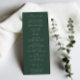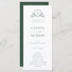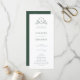 ESCUDO de BRUNSWICK, programa de bodas. Presencias, elegante tipografía verde y vegetación botánica y escudo floral adornado en frente con tipografía blanca y color de fondo verde en la parte posterior.