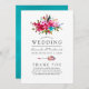 Boho moda rosa y azul turquesa acuarela ramos florales tarjetas de programa de bodas diseñadas para ser rápida y fácilmente personalizable a los detalles de tu evento.