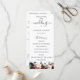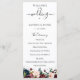Elegante flores y follaje de acuarela azul marino, rosa y burdeos para boda, programa de boda. Programa que incluye hermosa caligrafía de "boda" con varias líneas para listas de texto personalizadas para el orden de los eventos de la ceremonia, fiesta de boda y nota de agradecimiento.