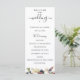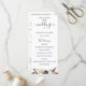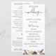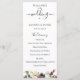 Flores y follaje de acuarela rosa y ciruela, programa de boda. El programa presenta una bonita caligrafía de acento "boda" con varias líneas para listas de texto personalizadas para el orden de los eventos de la ceremonia, fiesta de boda y nota de agradecimiento.