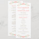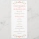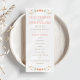 Ramos florales encantadores de estilo folclórico en tonos suaves de durazno, coral y verde enmarcan este caprichoso programa de ceremonia plana sobre un fondo blanco limpio. Sus nombres, fecha y orden completo de la ceremonia se presentan en tipografía cálida de durazno con un divisor de acento de punto juguetón. La parte trasera incluye a su corte nupcial y un agradecimiento. Totalmente personalizable en ambos lados.
