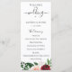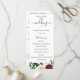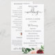 Programa de boda con flores y follaje de acuarela en tonos elegantes de borgoña y rubor. El programa cuenta con un acento de caligrafía linda que dice "boda" con varias líneas para listas de texto personalizadas para el orden de los eventos de la ceremonia, la fiesta de boda y una nota de agradecimiento.