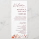 Comparte todos los detalles esenciales de tu boda con este programa de boda floral de flores silvestres boho chic rústico de otoño. Diseñado para coincidir con nuestra suite de invitaciones de boda de otoño modernas y rústicas, cuenta con flores silvestres de otoño en acuarela, vegetación suave y acentos florales boho chic pastel y coloridos—perfecto para una boda romántica al aire libre o en una granja rústica.