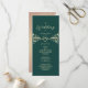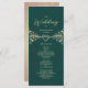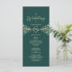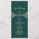 Elegante programa de bodas verde esmeralda y dorado con detalles florales y un romántico acento cardíaco de cuerda. Perfecto para guiar a los invitados por orden de ceremonia en bodas elegantes, formales, de otoño o de invierno. Personalice con sus nombres, fecha y detalles de la ceremonia de personalizado para un toque único. Coincide con la coordinación de invitaciones de esmeralda y oro, menús, carteles y papel de la misma colección de bodas.