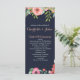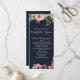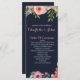 Flores románticas en tonos melocotón, rubor y coral en los programas de boda de longitud del té azul marino