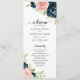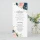 Programa de boda floral rústica con flores elegantes pintadas a la acuarela en rosa blush y azul navy junto con los detalles de su evento en un formato moderno. Las rosas de rosa blush hacen que este programa sea ideal para una boda de primavera y las rosas de azul navy lo hacen ideal para una boda de otoño.