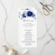 Elegante programa de bodas con temática real azul blanco plateado con elegante ramo de azul real, marina, plata, flores rosas de color blanco puro y hojas de eucalipto verde salado. Comuníquese conmigo para obtener ayuda sobre la personalización o si necesita cualquier otro producto con este diseño.