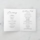 Rústico programa de bodas florales de otoño con un borde superior de flores de cascada y follaje en tonos marsala, violeta, burdeos, marrón y naranja. El ramo floral de otoño se complementa con un guión moderno de caligrafía. Personalice la parte delantera del programa de bodas florales boho de otoño con sus nombres, fecha de boda y ubicación. El interior del programa incluye el orden de servicio y la fiesta de bodas. La parte posterior del programa de bodas plegadas muestra un ramo coincidente con el mensaje de agradecimiento que aparece a continuación. Diseñado para coordinar con nuestra colección Rustic Autumn Floral boda.