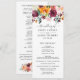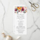 Flores vibrantes de otoño en ricos tonos de burdeos, rosa, naranja y cálidos tonos se desvanecen a través de este programa de ceremonia plana rústica. "La Boda De" aparece en elegante letra con sus nombres, fecha y orden completo de la ceremonia en la parte delantera, mientras que la parte trasera presenta a su corte nupcial y un mensaje de agradecimiento con un acento floral de otoño coordinado. Ambos lados son totalmente personalizables.