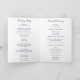 Programa de Bodas plegadas azul marino de estilo clásico con palabras de acento en una elegante tipografía caligráfica. El frente tiene los detalles del evento, el interior tiene tu fiesta de boda y orden de ceremonia. La parte posterior tiene una plantilla para su mensaje / citas. Estos programas de boda son perfectos para un boda formal.