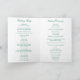 Programa de Bodas plegadas de color verde esmeralda con acento en una elegante tipografía caligráfica. El frente tiene los detalles del evento, el interior tiene tu fiesta de boda y orden de ceremonia. La parte posterior tiene una plantilla para su mensaje / citas. Estos programas de boda son perfectos para un boda formal.