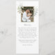 Elegante programa de bodas, con una hoja de salvia color agua en azul y verde polvoriento, en la parte posterior del programa de bodas, puedes añadir tu propia foto y agradecerte el texto. La foto está rodeada por un follaje verde semitransparente.