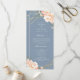 Este es el programa perfecto para su próximo boda. Si estás enamorado del elegante tema del boda azul polvoriento y también te gusta el oro y las flores, aquí está tu combinación perfecta. Este diseño presenta elegantes peonías y brotes de rosa en tonos de melocotón y crema ondulados en Relieve metalizado de oro falso, junto con una forma geométrica de Relieve metalizado de oro falsa que rodea los detalles del programa de boda con un fondo de azul polvoriento en la parte delantera y trasera. Todo el texto se personaliza fácilmente utilizando los campos de plantilla proporcionados. Consulte la colección de productos de suites boda complementarios. Si tiene alguna pregunta sobre el diseño o desea ver este diseño en otro producto, por favor, no dude en ponerse en contacto conmigo en jschmidtdesignworks@gmail.com. Diseño © Judith Schmidt.