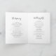 El moderno programa de bodas minimalistas cuenta con escritura a mano y elegantes detalles del tipo de letra sans serif, en color blanco y negro carbón, sencillo y elegante. Ideal para bodas clásicos modernos, boda formal simple, boda minimalista elegante. Vea todas las piezas coincidentes de la colección.
