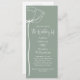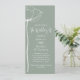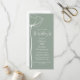 Este floral blanco y audaz sobre un fondo verde sabio es un programa sencillo y moderno para su día de bodas. Personalice toda la información, incluidos los detalles de la ceremonia y los asistentes