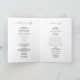 Programa de boda simple con "la boda de" en caligrafía junto con los detalles de su boda en blanco y negro. El interior tiene su orden de ceremonia y cortejo nupcial y la parte posterior tiene su mensaje personalizado de agradecimiento. Un diseño minimalista con tipografía chic para un toque elegante.