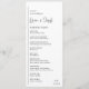 Programa de boda moderno con un diseño geométrico simple y minimalista con una línea vertical en el lado izquierdo con tus datos alineados a la izquierda. Tus nombres están en una letra manuscrita para dar un toque elegante. En la esquina inferior derecha está el monograma de tus dos iniciales sobre una pequeña línea horizontal. La paleta de colores se puede cambiar en la herramienta de edición de diseño.