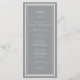 Elegante programa de boda minimalista que presenta un diseño moderno simple con un borde doble enmarcado en blanco crujiente sobre un fondo ULTIMATE GRAY. La redacción tradicional y clásica proporciona una sofisticación atemporal. Personalice los detalles de la ceremonia de boda para sus invitados en letras y escritura de caligrafía blanca crujiente de moda. La parte trasera de la tarjeta coincide con blanco crujiente sobre gris y trata sobre su grupo de boda. No dude en hacérmelo saber a invitationsuites@gmail.com si tiene preguntas sobre este o cualquier otro de nuestros productos.