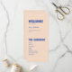 Moderno Programa de Bodas Retro y Negrita Azul Beige. Personalizar con nombres de novias y novios, su ubicación y fecha de boda, orden de servicio y nombres de fiestas nupciales a la espalda.