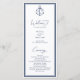 Este elegante programa de boda náutica presenta un monograma de ancla en la parte superior con las iniciales de la novia y el novio, con un doble marco azul marino, un fondo blanco y texto clásico elegante azul marino con caligrafía de guión.