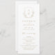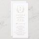 Iniciales monogramadas enmarcadas por elegantes hojas botánicas de escudo e ilustradas a mano, detalles de tu evento en un guión elegante y tipo de letra clásico, simple y lujoso. Excelentes programas en oro y blanco para bodas clásicos modernos, boda formal simple, elegante boda botánica en el jardín. Vea todas las piezas coincidentes de la colección.