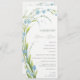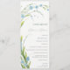 Programa de Bodas con un elegante ramo de flores suaves azules olvidadas no con hojas verdes claras y tallos curvados, colores pastel naturales primaverales o veraniegos, un romántico ramo de flores silvestres. acuarela digital botánica. Programa de Boda de Flor Cuta. Colección Olvidar No.
