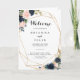 Este programa de boda dorado geométrico y floral es perfecto para un boda moderno. El diseño está decorado con flores de oro y follaje verde, repartidos en bonitos ramos, adornando un marco artístico geométrico.
