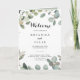 Este programa de bodas plegadas de eucalipto verde es perfecto para un boda moderno. El diseño presenta un eucalipto elegante de acuarela botánica, de inspiración natural. Incluya un presupuesto o mensaje corto, orden de servicio, fiesta de boda y mensaje de agradecimiento.