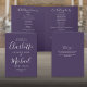 Programa de bodas con guion con firma púrpura, con tipografía moderna de moda, este elegante programa de bodas puede ser personalizado con su información especial del día de la boda. Diseñado por Thisisnotme©