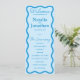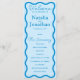 Guíe a sus huéspedes durante su día especial con el programa Wavy Retro Wedding. Diseñado con un audaz pero elegante borde ondulado, este programa combina el encanto vintage con la sofisticación moderna. Perfecto para las parejas que aman una estética groovy e intemporal, ofrece una manera elegante de esbozar los detalles de su ceremonia, al tiempo que añade un toque retro único a su papelería boda.
