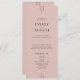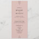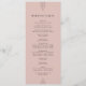 Este programa de bodas de la Everly Collection presenta un diseño rosa y lujoso, con detalles refinados en la línea Art Déco y una elegante tipografía negra. Es perfecto para bodas de moda, de inspiración vintage. Incluya los nombres de la pareja, la fecha y ubicación del boda, un mensaje de agradecimiento, el orden de servicio, la fiesta de boda y un monumento opcional "en memoria amorosa".