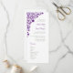 Jardín secreto, floral morado, programa del día de bodas de los amorosos. Detalle de rincón floral detallado en morado. Personalizar con sus nombres en letra de guion morado y su información boda en letras de sabio oscuro. Diseñado para coincidir con nuestra colección Lovebirds Secret Garden Wedding.