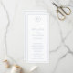Sencillo programa de bodas azul polvoriento con su monograma en un círculo en la parte superior y los detalles de su boda rodeados de un borde delgado. Sus nombres y encabezados están en una elegante letra manuscrita. El diseño clásico y tradicional hace que este programa sea ideal para un boda formal.