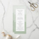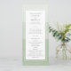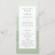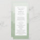 Este precioso y elegante programa de bodas verdes de salvia presenta un fondo sombrío de color de agua con un borde blanco. La parte posterior de la invitación incluye el mismo fondo de color de agua de salvia. Buscar elementos coincidentes en la colección de Bodas de color de agua verde sabio.