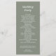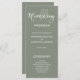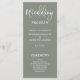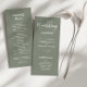 El elegante programa plano verde 4x9 Boda ofrece un diseño elegante y sofisticado para guiar a sus huéspedes durante su día de bodas. Su alargado tamaño 4x9 proporciona amplio espacio para detallar el calendario de eventos, los nombres de la fiesta nupcial y los mensajes especiales. La elegante paleta de colores verdes, combinada con la tipografía minimalista, crea un aspecto intemporal, inspirado en la naturaleza. Perfecto para parejas que buscan una estética moderna pero clásica, este programa plano es fácil de personalizar con sus detalles personales, ofreciendo funcionalidad y elegancia para su día especial.