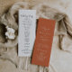Este programa de bodas botánicas de otoño es perfecto para un boda rústico. El diseño presenta un hermoso tipo de letra caligráfica en blanco.