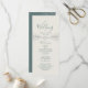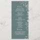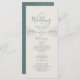Elegante, boho, flor silvestre, botánico, programa de bodas verde sabio con corazón de cuerda plateada y encaje floral vintage dorado.