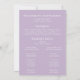 Este programa de bodas, inspirado en el boho, está muy bien diseñado y guía a sus huéspedes durante su día especial. Con elegantes flores silvestres de acuarela en suave lila de lavanda y amarillo soleado, este diseño es perfecto para bodas con un tema rústico, campestre o de flores silvestres. La tipografía de estilo boho morado oscuro aporta un toque de sofisticación, haciendo que el programa sea funcional y de diseño. El reverso está adornado con un fondo lavanda-lila y puntas de polka blanco delgadas, lo que crea un aspecto cohesivo y encantador. Personalizable completo, este programa le permite compartir detalles de la ceremonia, información de la fiesta nupcial y mensajes de corazón de una manera que complemente la estética de su boda.